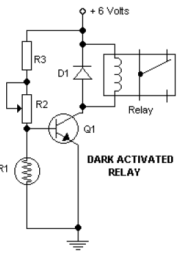 Additional NotesNone of the parts are critical and easy available. The potmeter adjust the trigger 'on' level. The diode in the diagram shows to be 1N914. This is ok if you have a light-duty relay, also the 1N914 is a signal diode so actually does not qualify. Use a 1N4001 (or better) instead. A couple of substitutes for the 2N2222 transistor are: NTE123A, ECG123A, PN100, etc. |
