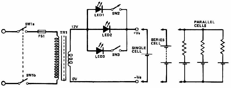 This circuit uses constant current LEDs to adjust charging current. It uses LEDs that pass a constant current of about 15 mA for an applied voltage range of 2 to 18 V. They can be paralleled to give any multiple of 15 mA and the light up when current is flowing. The circuit will charger a single cell at 51, 30, or 45 mA, or cells in series up to the rated supply voltage limit (about 14 V)