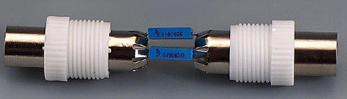 The latter have to be suitable for high-frequency applications, such as ceramic or MKT types. It is furthermore advisable to choose types rated for high voltages (400 V), since the voltages across these capacitors can be higher than you might expect (A PC that isn’t connected to the mains Earth can have a voltage as high as 115 V (but at a very low, safe current), caused by the filter capacitors in its power supply. These capacitors don’t need to be high value ones, since they only have to pass through frequencies above about 50 MHz. Values of 1 nF or 2.2 nF are therefore sufficient. To make the isolator you should connect one capacitor between the two earth connections of the coax plugs and the other between the two signal connections. The mechanical construction has to be sturdy enough such that the connections to the capacitors won’t break whenever the inline adapter is removed forcibly. A good way to do this is to make a cover from a piece of PVC piping for the central part. Wrap aluminium foil round the outside and connect it to one of the plugs, so that the internal parts are properly shielded from external interference. Make sure that the aluminium foil doesn’t make contact with the other plug, otherwise you lose the isolation. The majority of earth loops will disappear when you connect these filters to all used outputs of the central aerial distribution system where the signal enters the house.